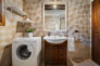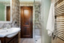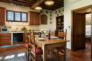 4-Zimmer-Haus, ca. 100 m², im EG: großes Wohnzimmer mit Kamin und Schlafcouch und 2 Sessel, durch einen offenen Rundbogen gelangen sie in das Esszimmer mit Kochzeile mit Tisch und Stühle, 2 Doppelzimmer, 2 Bäder mit Duschkabine und WC. Von einem Schlafzimmer geht es in eine fensterreiche, geschlossene Veranda mit Mobiliar.